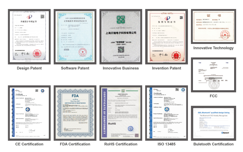 Berry has been recognized as a national high-tech company and has acquired China's High and New-Technology Enterprise Status. So far, we have accumulated over 40 patent certificates and more than 30 copyrights. Additionally, Berry has obtained various certifications such as CE, FDA,ISO13485,ANVISA, and INMETRO.