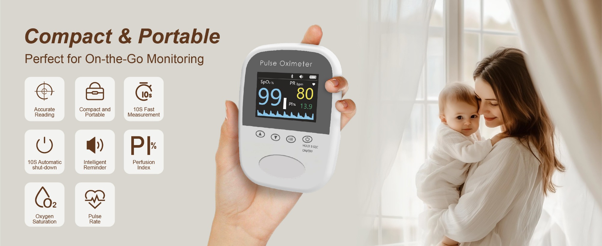 Pulse Oximeter adopts Photoelectric Oxyhemoglobin Inspection Technology integrated with Capacity Pulse Scanning & Recording Technology, which can be used to measure human oxygen saturation and pulse rate through finger.